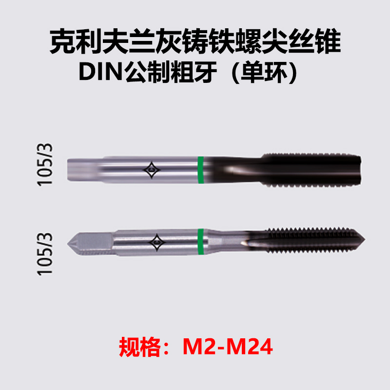 克利夫蘭灰鑄鐵綠色單環螺尖絲錐M2-M24 DIN公制粗牙