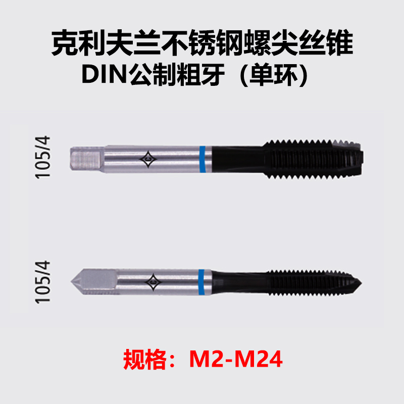 克利夫蘭不銹鋼藍色單環螺尖絲錐M2-M24 DIN公制粗牙