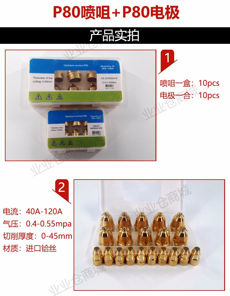 P80等離子接觸性噴咀 切割機配件 孔徑1.5電極 進口美鉿 加厚耐用