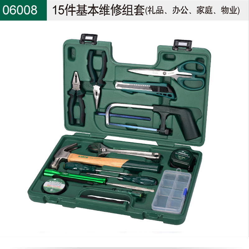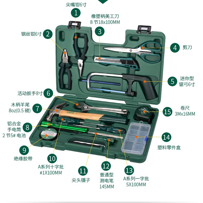 世達(dá)家庭套裝電工工具箱家用五金維修組合老虎鉗螺絲刀15件